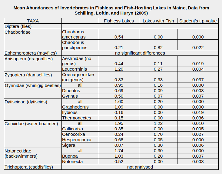 - Unusually common amphipods up to 20 mm, 1.5 mm copepods, caddisfly larvae (Trichoptera).